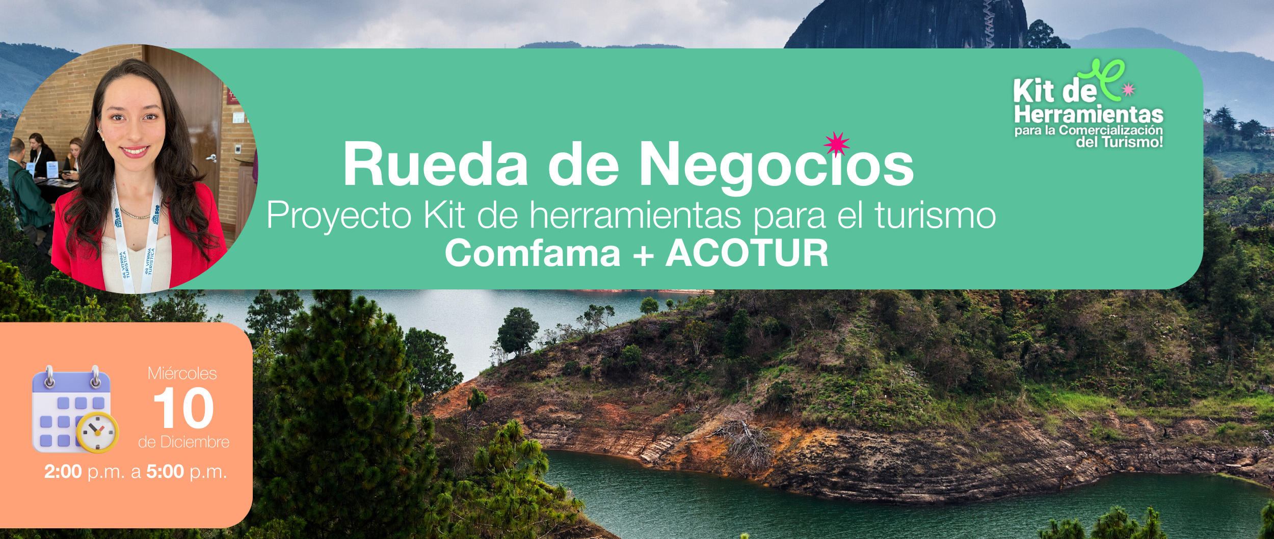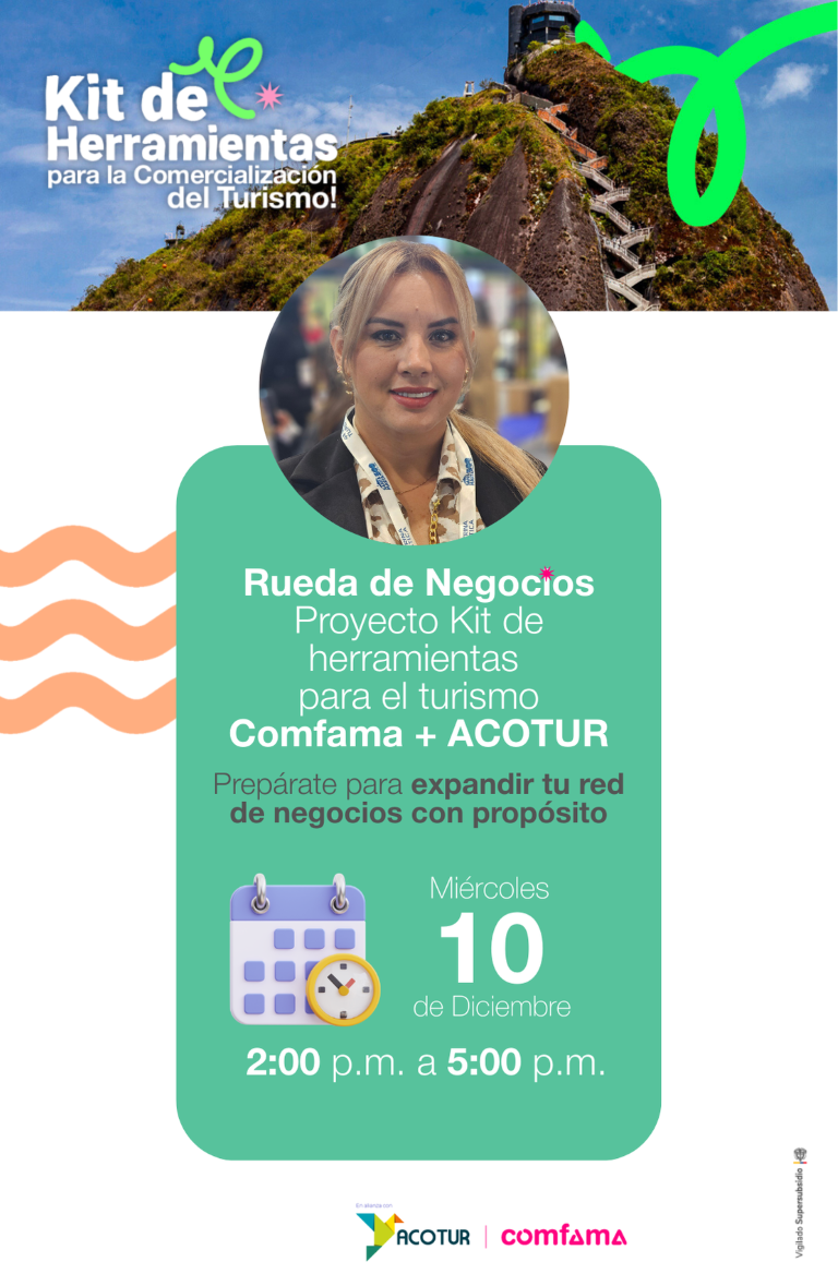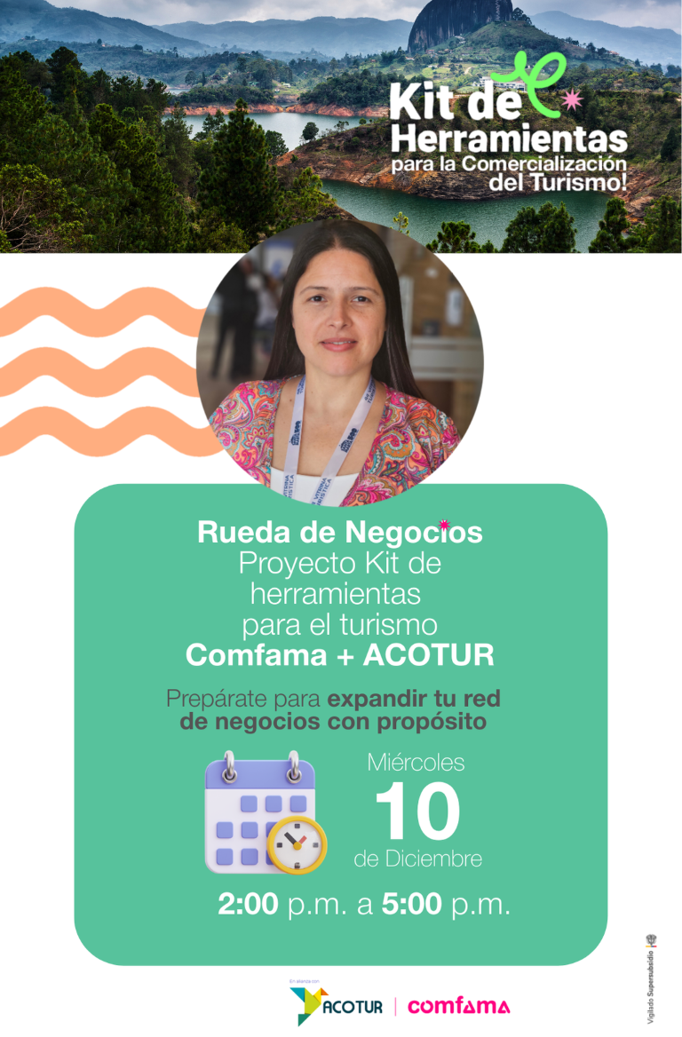 La Rueda de Negocios Comfama + ACOTUR es un espacio diseñado para fortalecer el encadenamiento entre empresarios turísticos de Antioquia y comercializadores nacionales, fomentando relaciones comerciales sostenibles, colaborativas y regenerativas.
